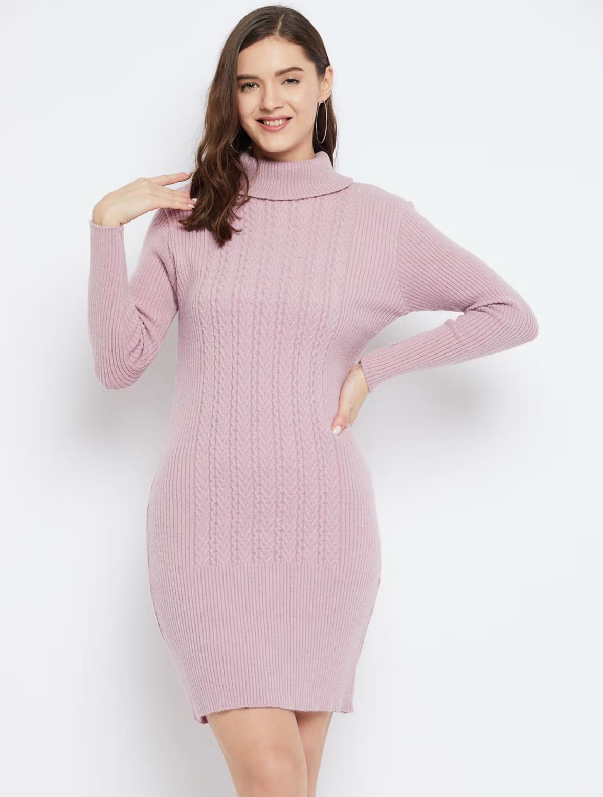 Stay warm and stylish in this cozy wool bodycon dress! Featuring a self-design pattern, full sleeves, and a classic turtle neck, it’s perfect for casual days with a chic twist. Effortlessly flattering with its snug fit and soft texture. ❄️✨